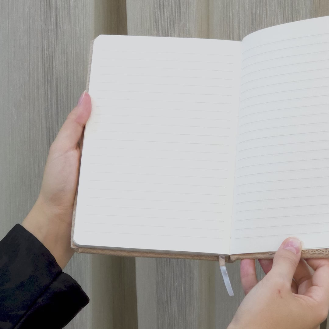 - صناعة متقنة وجودة عالية: غلاف من قماش الكتان الناعم يمنح الدفتر ملمسًا راقيًا ومظهرًا أنيقًا.