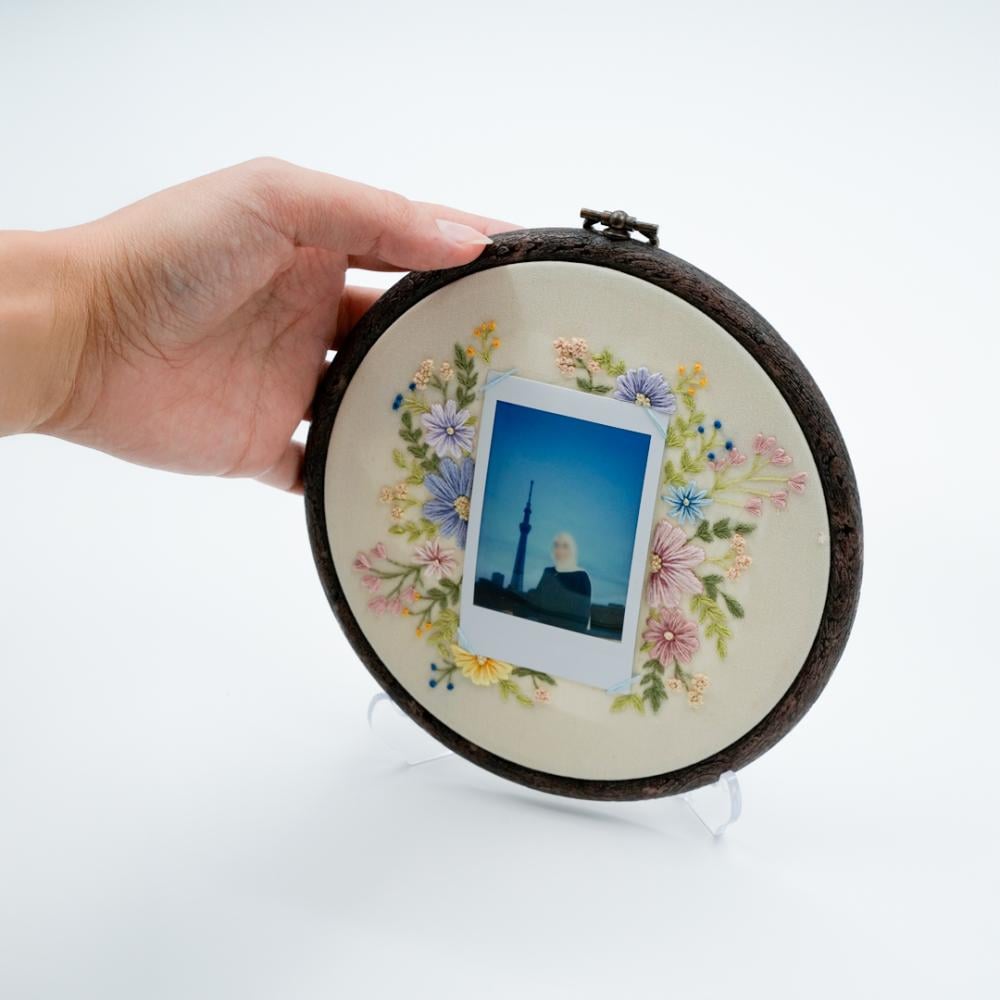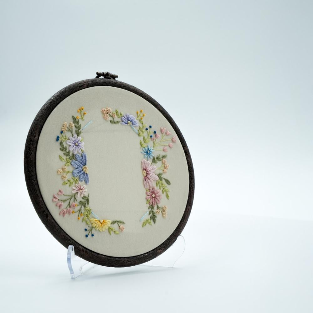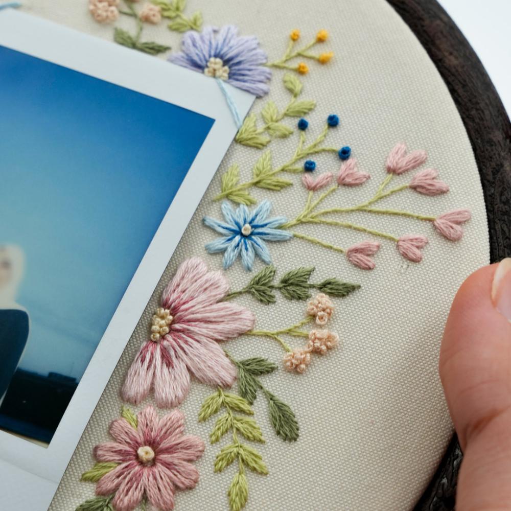 إطار صور مطرز يدويًا بخيوط دافئة, كل زهرة لمسة من البهجة والنعومة.