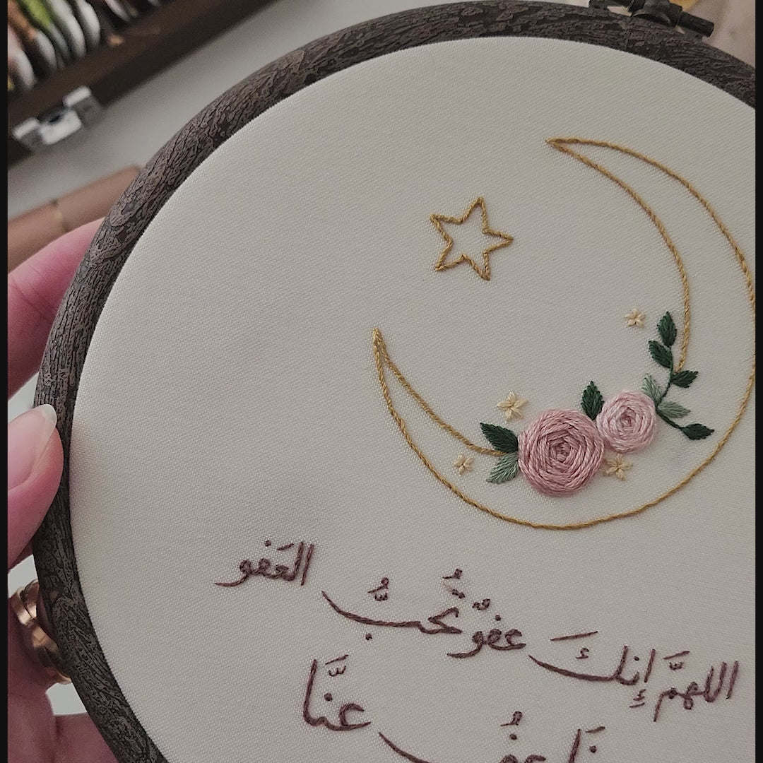 إطار يُطرّز يدويًا وعلى ذوقك بخيوط دقيقة وتفاصيل غنية تمنحه عمقًا بصريًا مختلفًا عن أي قطعة جاهزة. كل شيء يُختار بعناية لنصنع لوحة فريدة تستحق أن تُعرض في أجمل مكان